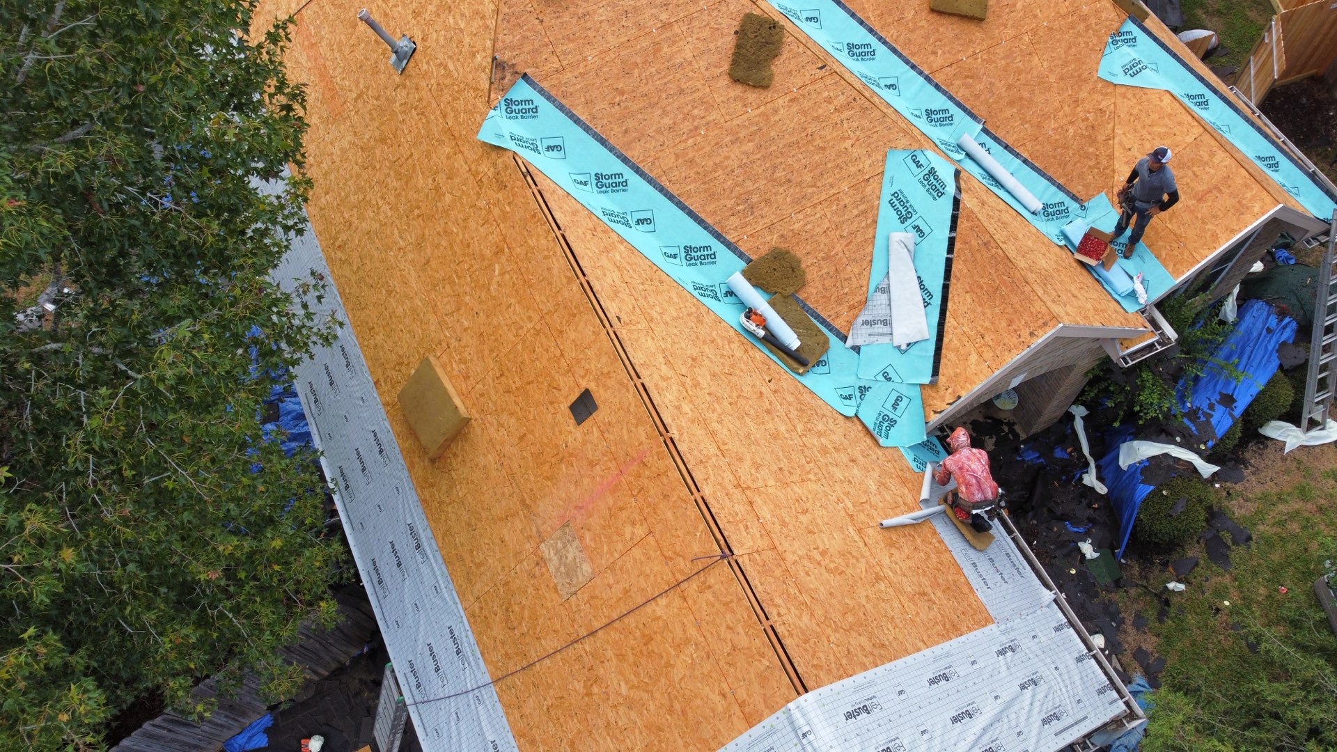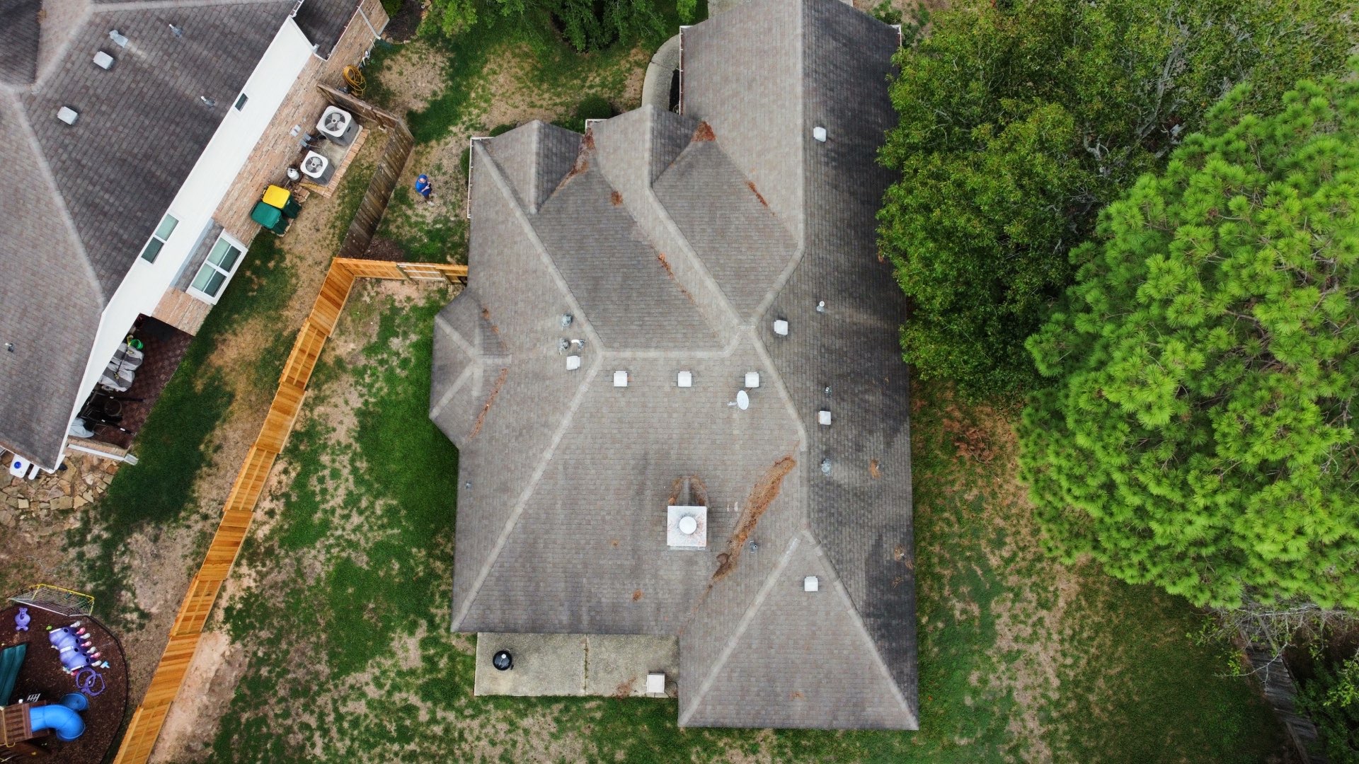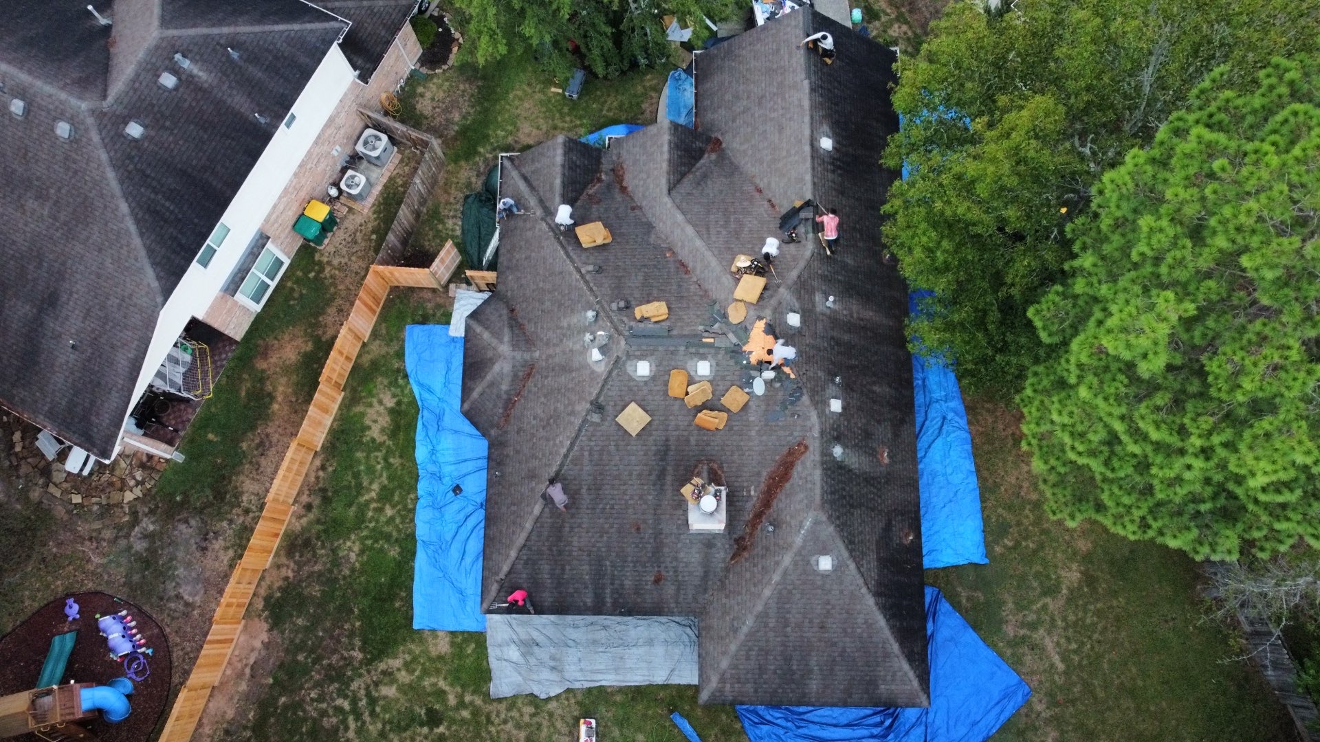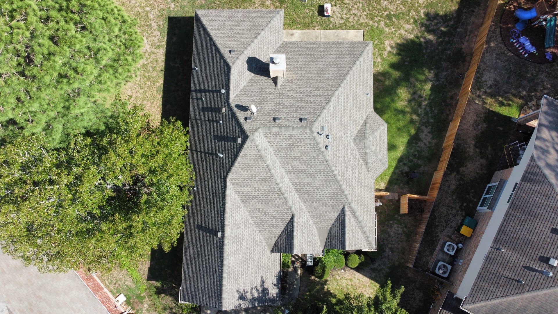 Roof replacement in The Woodlands, Texas with GAF Timberline HDZ in Weathered-wood and GAF Z-ridge hip and ridge shingles.